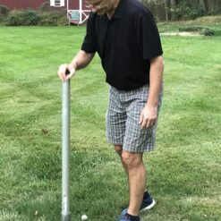 Because of my cursed bad back, (surgery 13 years ago and likely again this year) I use the shag tube personally in my backyard. This quality shag tube was previously only sold to my driving range and golf course clients for their on-course use, but after receiving enough consumer shag-tube-inquiries for personal backyard use, I recently added it to my consumer offering.
